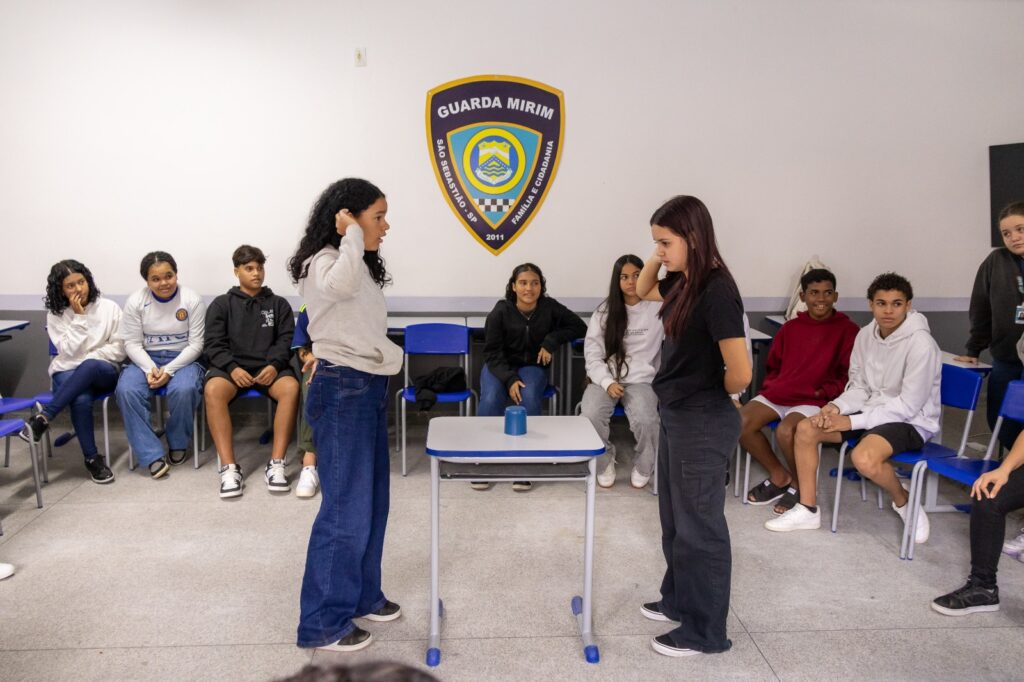 Durante a atividade, os alunos conheceram de perto o funcionamento da Guarda Mirim, participaram de dinâmicas com a equipe e esclareceram dúvidas sobre o programa, que há décadas contribui para a formação profissional e cidadã de adolescentes de São Sebastião.