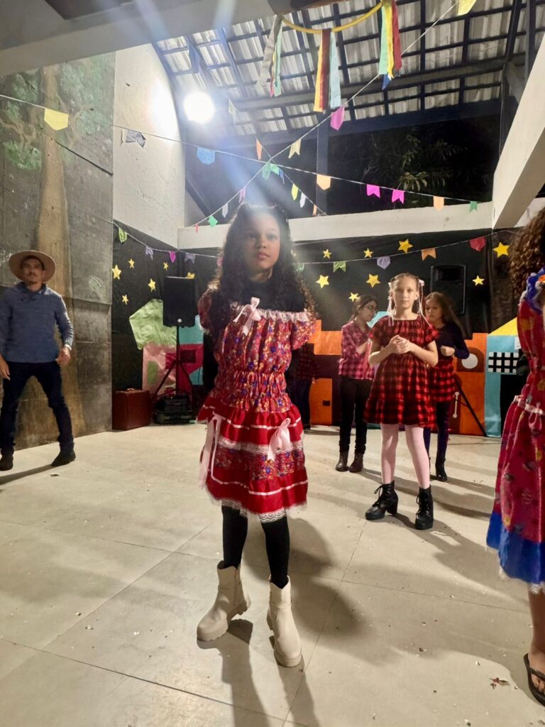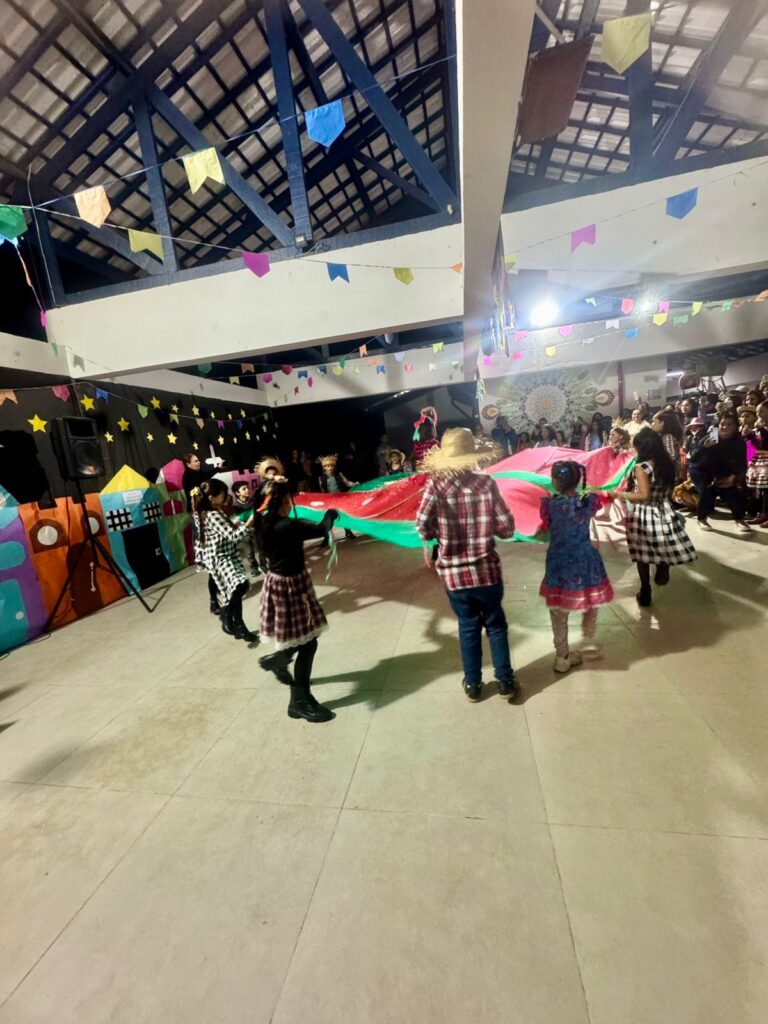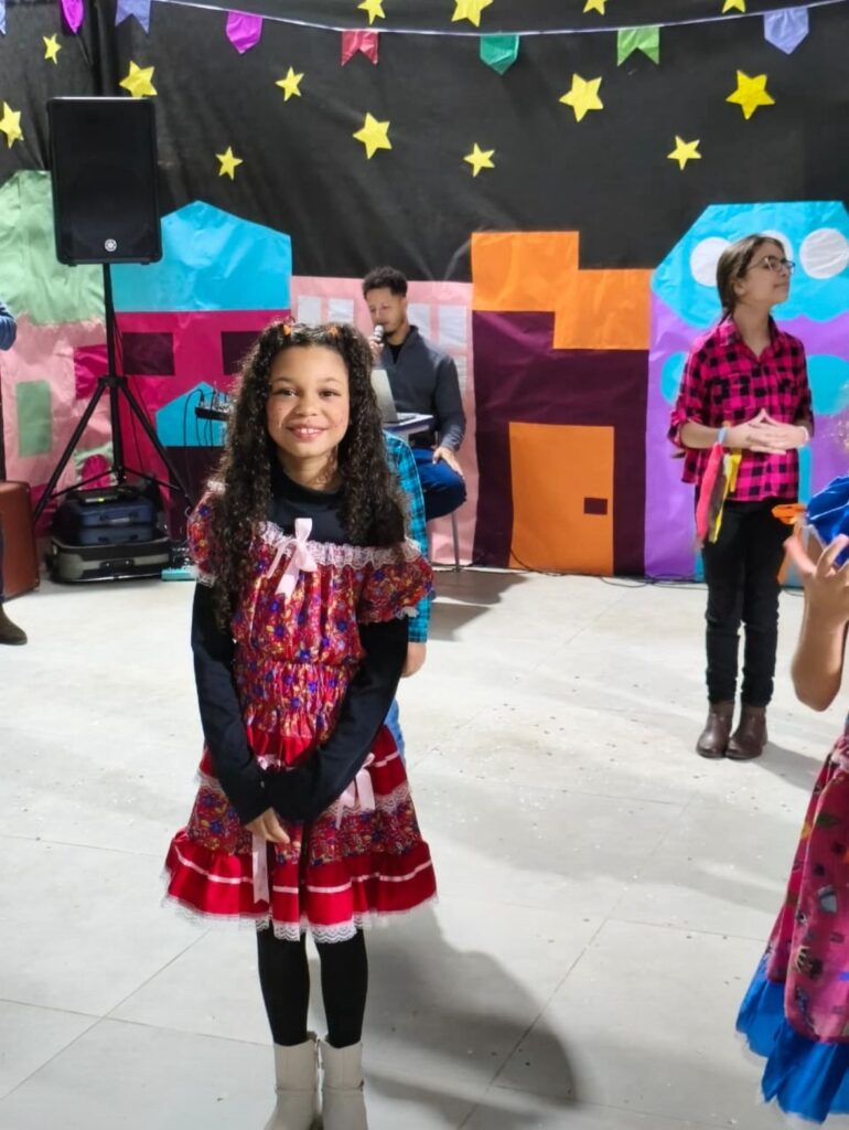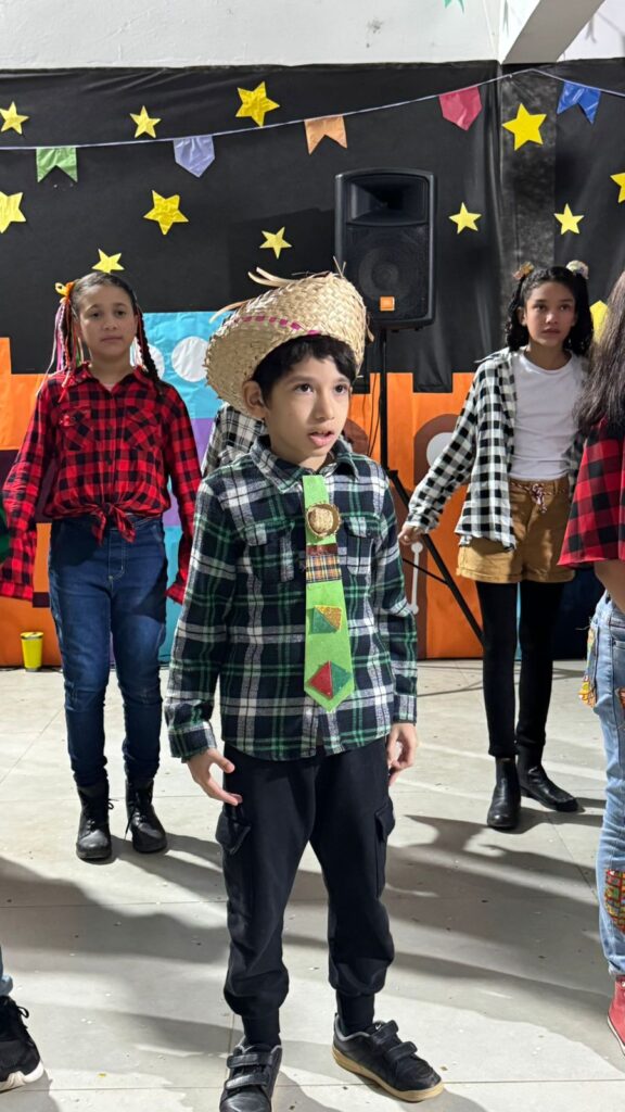 Cada detalhe, desde as decorações coloridas até as deliciosas comidas típicas, contribuiu para criar uma atmosfera alegre e acolhedora. As atividades e apresentações foram um sucesso e garantiram que todos se divertissem e se envolvessem com essa rica tradição. Contamos com apresentação e cardápio junino acessível em Libras. A escola vem fomentando uma comunicação com menos barreiras e mais acessibilidade e pretende em breve instituir um coral de Libras.