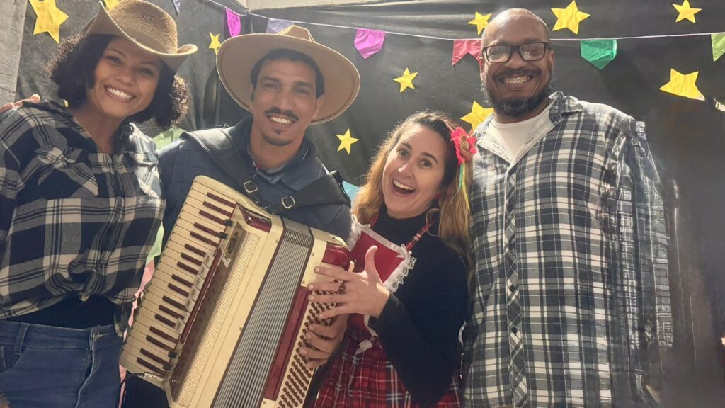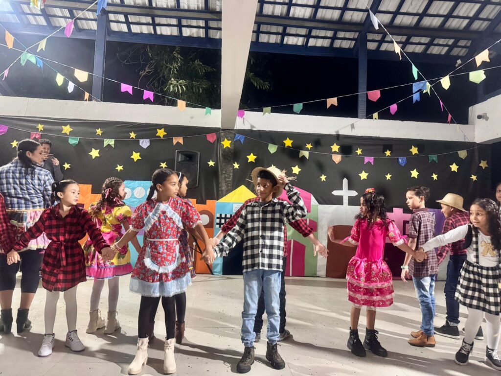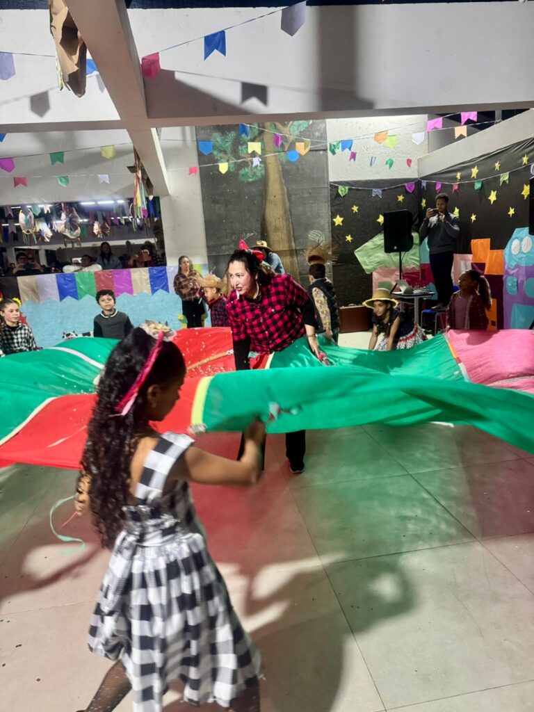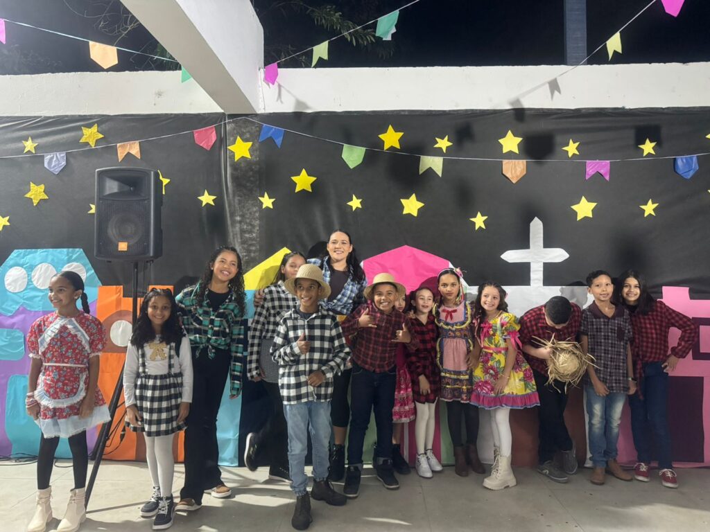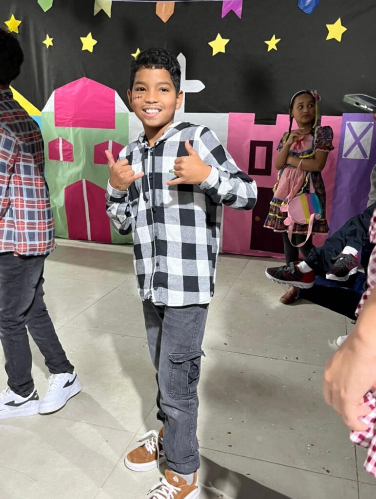 Cada detalhe, desde as decorações coloridas até as deliciosas comidas típicas, contribuiu para criar uma atmosfera alegre e acolhedora. As atividades e apresentações foram um sucesso e garantiram que todos se divertissem e se envolvessem com essa rica tradição. Contamos com apresentação e cardápio junino acessível em Libras. A escola vem fomentando uma comunicação com menos barreiras e mais acessibilidade e pretende em breve instituir um coral de Libras.