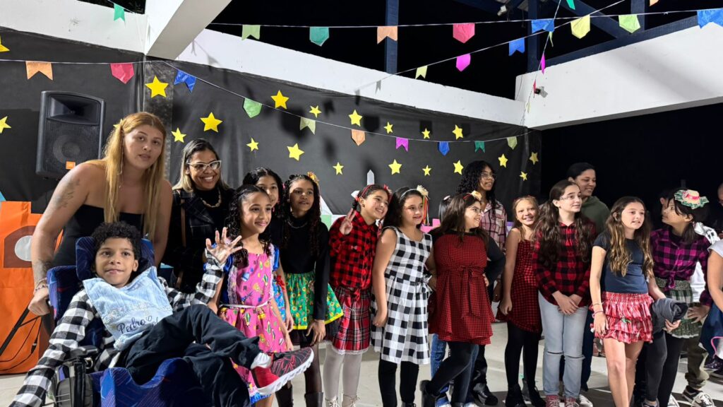 Ao término das tradicionais apresentações juninas, ainda houve uma mensagem em Língua de sinais utilizando a datilologia que é o alfabeto em Libras, para todos que estavam ali presentes “ VIVA A INCLUSÃO SOCIAL “