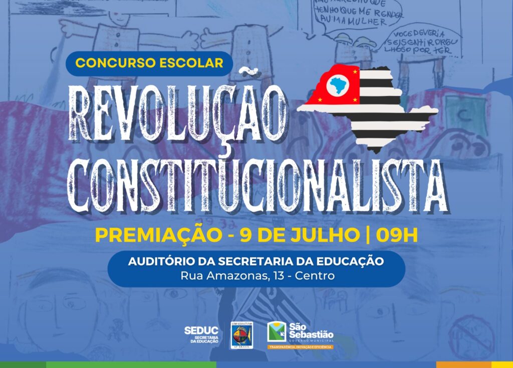 A Prefeitura de São Sebastião, por meio da Secretaria da Educação (Seduc), promove nesta quarta-feira (9), a partir das 9h, no Auditório da Seduc, a cerimônia de premiação da 22ª edição do Concurso Escolar em alusão à Revolução Constitucionalista de 1932.