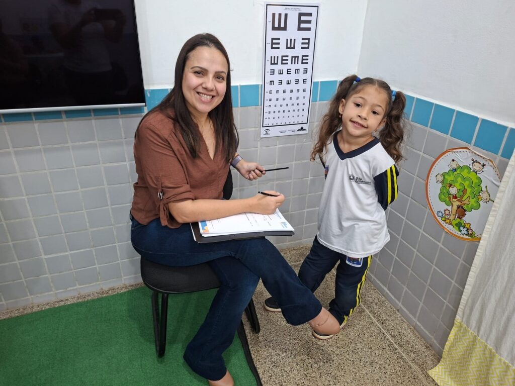 SAÚDE NA ESCOLA: Educação Inclusiva realiza teste de acuidade visual em escola de Educação Infantil. Em parceria com a Secretaria da Saúde, a ação tem o objetivo de investigar e encaminhar à avaliação oftalmológica alunos da rede.