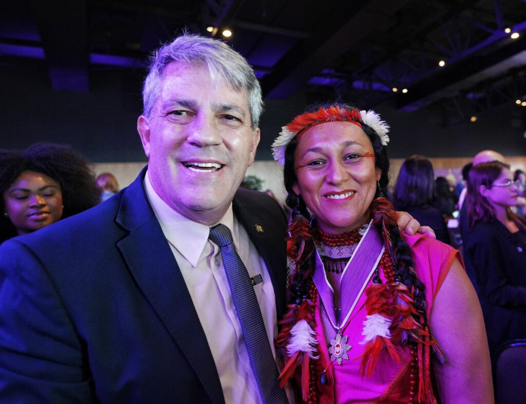 A honraria também reconhece sua atuação como coordenadora do projeto Escolas Vivas, iniciativa que fortalece a transmissão intergeracional dos saberes indígenas e reafirma o território como espaço central de aprendizagem. Na Mbya Arandu Porã – Escola Viva Guarani, na Terra Indígena Ribeirão Silveira, práticas ancestrais dialogam com a agrofloresta, o cultivo de abelhas nativas e a revitalização da língua Guarani, criando um ambiente educativo que integra cultura, identidade e sustentabilidade.