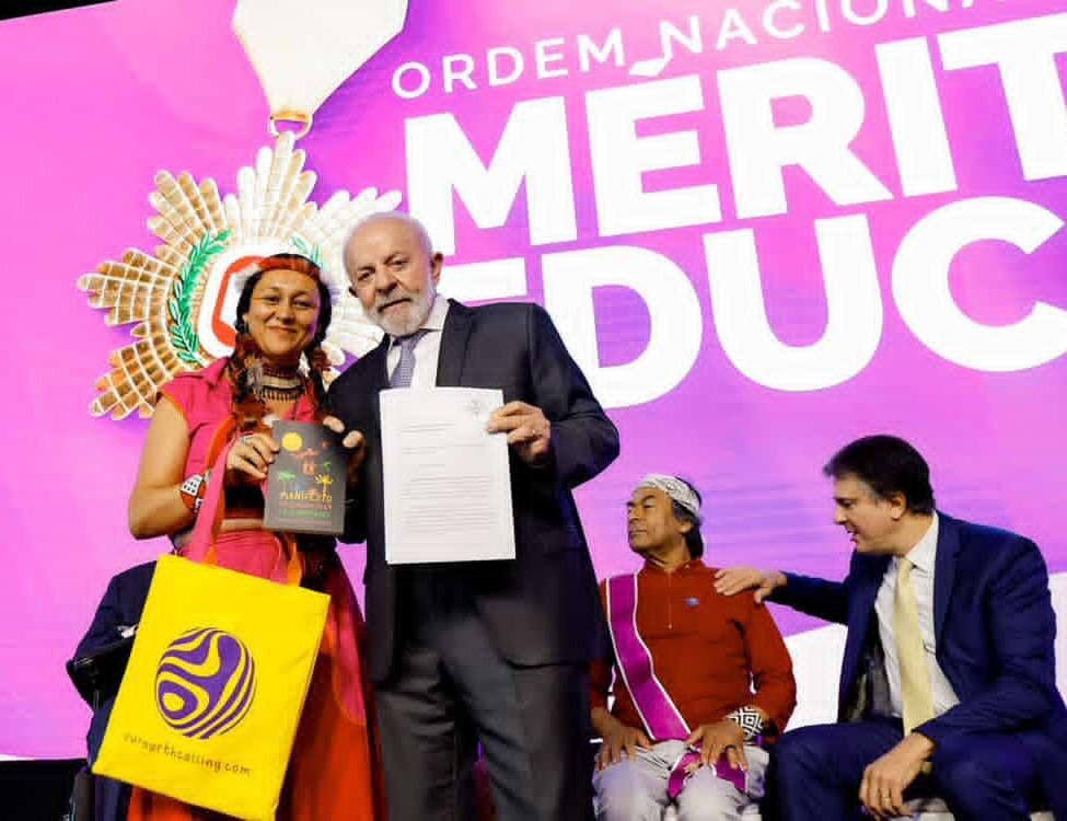 A educadora, filósofa e pensadora indígena Cristine Takuá foi agraciada com a Ordem Nacional do Mérito Educativo, uma das mais importantes honrarias concedidas pelo Governo Federal a personalidades que se destacam por serviços excepcionais prestados à Educação brasileira. A cerimônia de entrega ocorreu em Brasília, reunindo lideranças e representantes de iniciativas educacionais de todo o país.