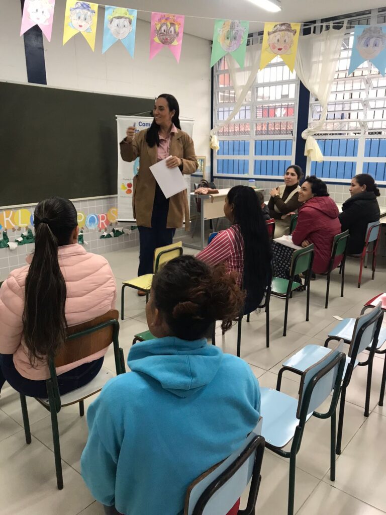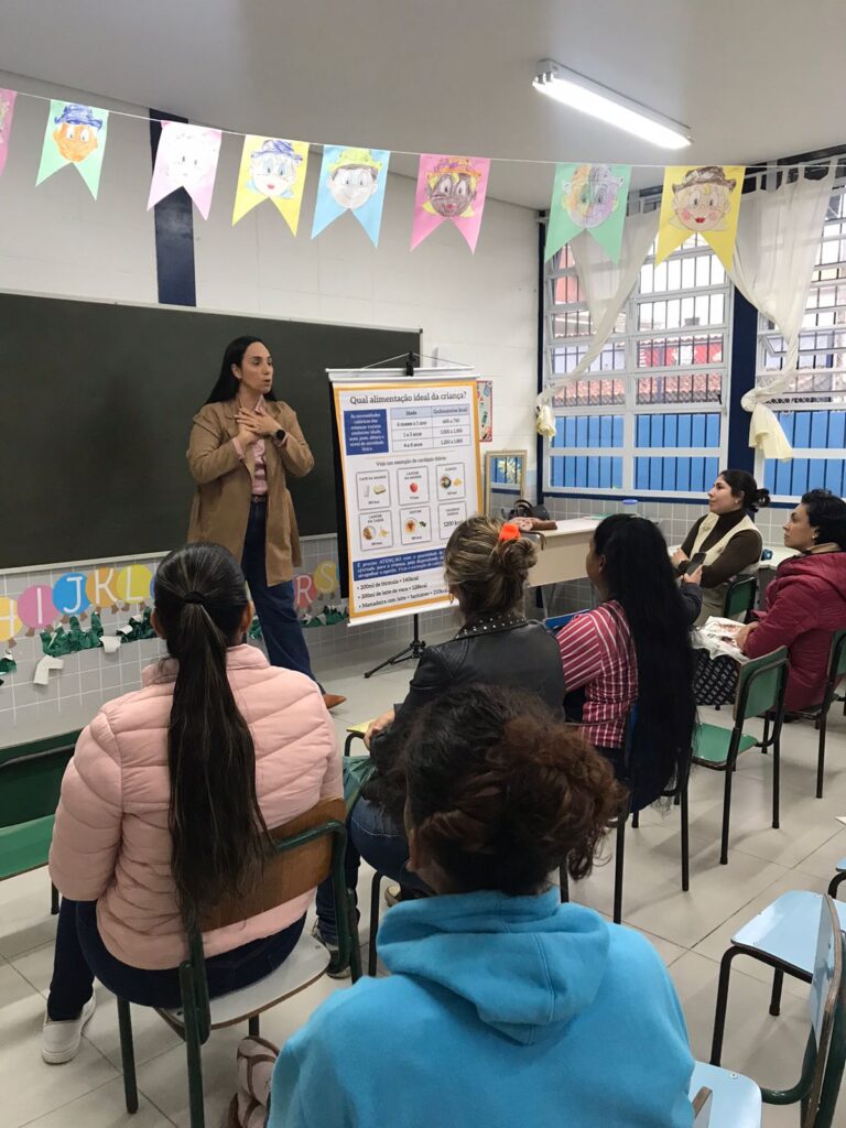 A nutricionista Camila Queiroz, da equipe da Secretaria de Educação, realizou uma importante reunião com os responsáveis pelos alunos das primeiras etapas para dialogar sobre a alimentação escolar e os hábitos alimentares em casa.