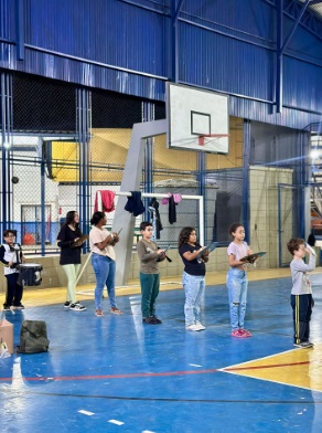 Nesse ensaio, o foco principal foi a formação e a execução, já pensando no Desfile de 7 de Setembro.