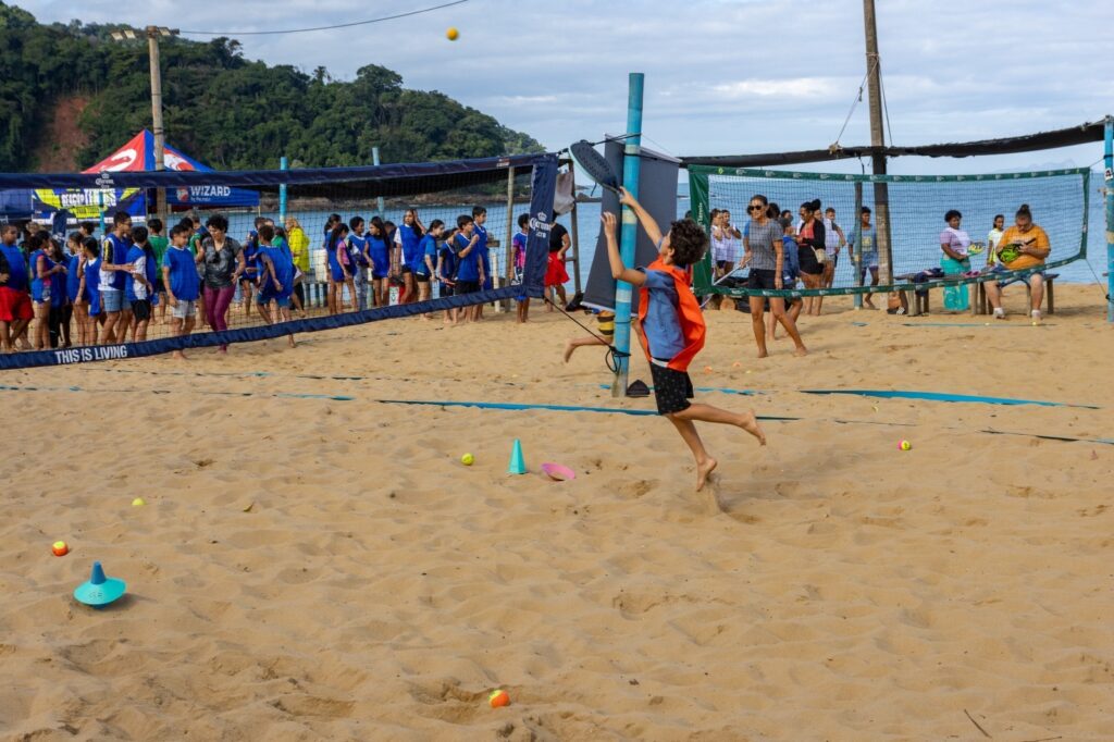 A manhã do último sábado (7/6) foi de muita energia, aprendizado e integração para os alunos da Escola Municipal Mathew Lucca Carmo Damasceno, do bairro de Cambury, que participaram de mais uma vivência do projeto “Beach Tennis para Todos”. A atividade aconteceu na praia de Boiçucanga e foi realizada pelos idealizadores do projeto e seus apoiadores, com a parceria da ABTB e Prefeitura de São Sebastião, por meio das Secretarias da Educação (Seduc) e de Esportes (Seesp).
