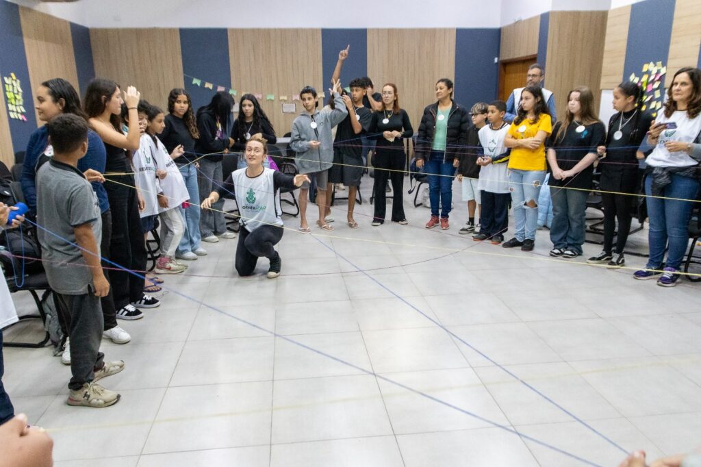 Durante o encontro, os estudantes participaram de rodas de conversa, atividades de escuta e imaginação, e foram incentivados a responder questões como ‘O que você sonha para sua escola?’ e ‘Que mundo você deseja ajudar a tecer?’. A cada nova linha trançada na teia, um jovem partilhava um sonho ou uma meta, fortalecendo o sentimento de pertencimento e responsabilidade coletiva.