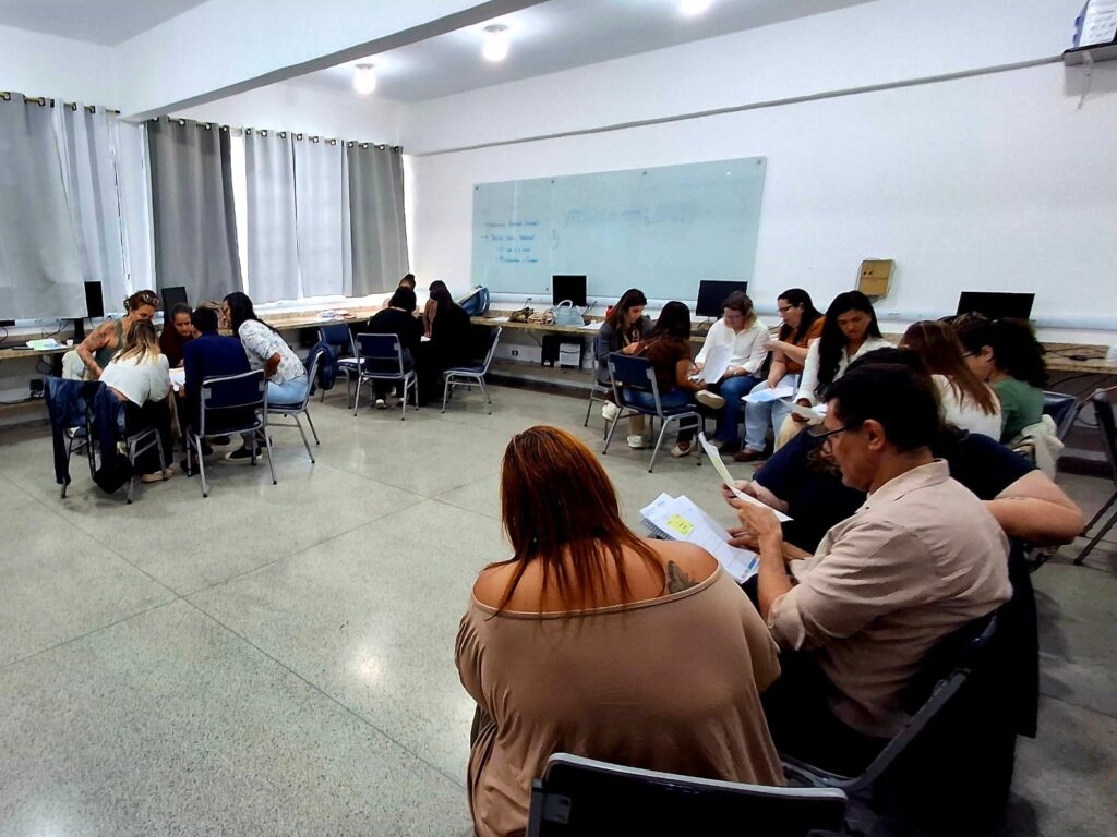 No momento de articulação entre teoria e prática, os coordenadores analisaram aulas do “Currículo em Ação” e propuseram formas de ampliar e potencializar as propostas com foco na formação leitora dos estudantes. A finalização da formação foi marcada por uma sensibilização e um convite simbólico à escuta e à valorização da palavra no cotidiano escolar.