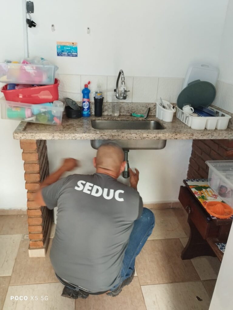 Manutenção na Creche Barequeçaba MANUTENÇÃO DAS UNIDADES ESCOLARES SEDUC EM AÇÃO 29 de julho de 202529 de julho de 2025ludervan INSTALAÇÃO DE RELÓGIO PONTO, CONSERTO DE GUARNIÇÃO DA PIA E DESENTUPIMENTO DE PIA.