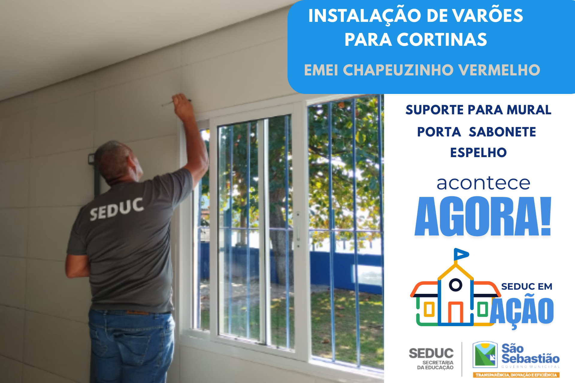 MANUTENÇÃO NA EMEI CHAPEUZINHO VERMELHO MANUTENÇÃO DAS UNIDADES ESCOLARES SEDUC EM AÇÃO 21 de julho de 2025ludervan INSTALAÇÃO PORTA SABONETE ESPELHO CORTINAS SUPORTE PARA MURAL CORTINAS