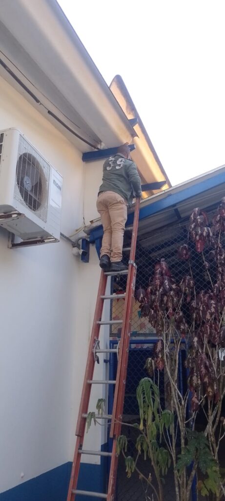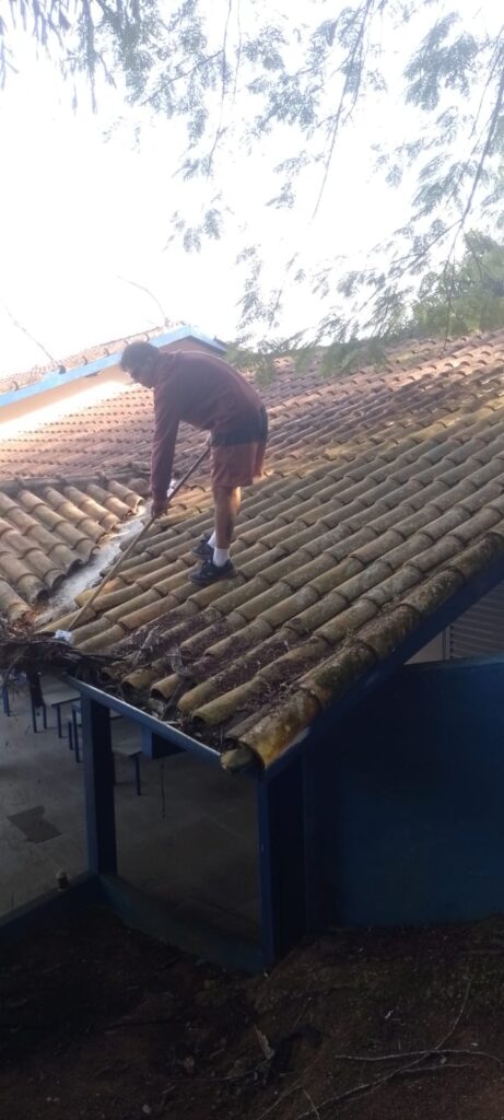 MANUTENÇÃO NOS BANHEIROS DA UNIDADE MARIA FRANCISCA E LIMPEZA NOS TELHADOS.