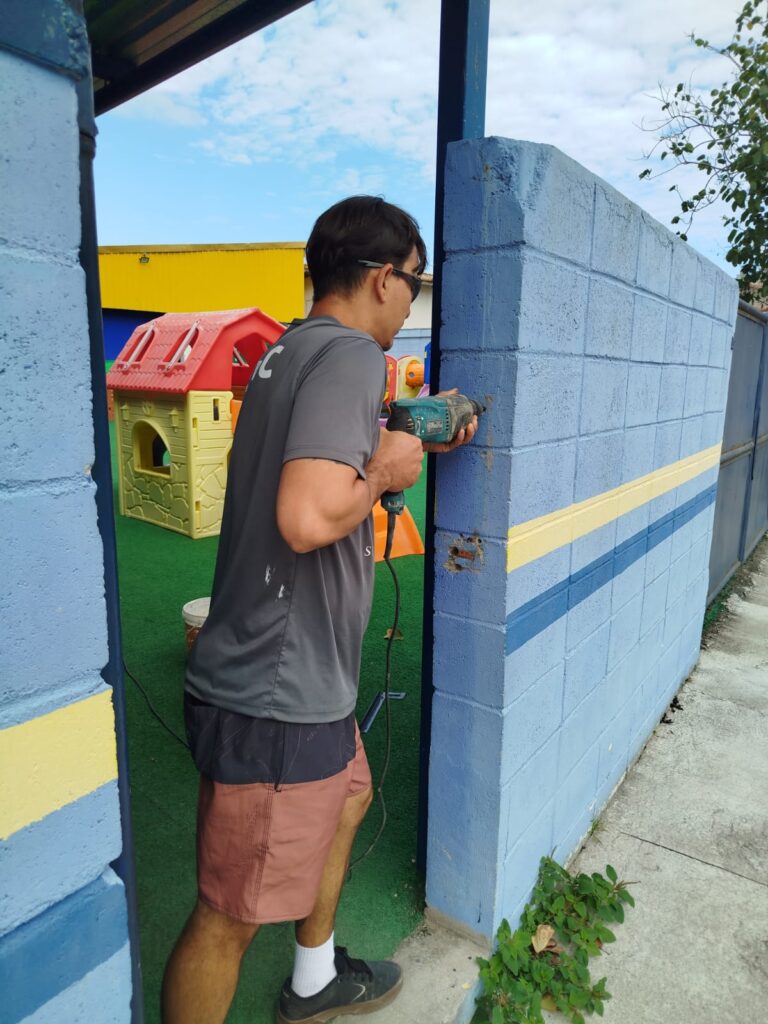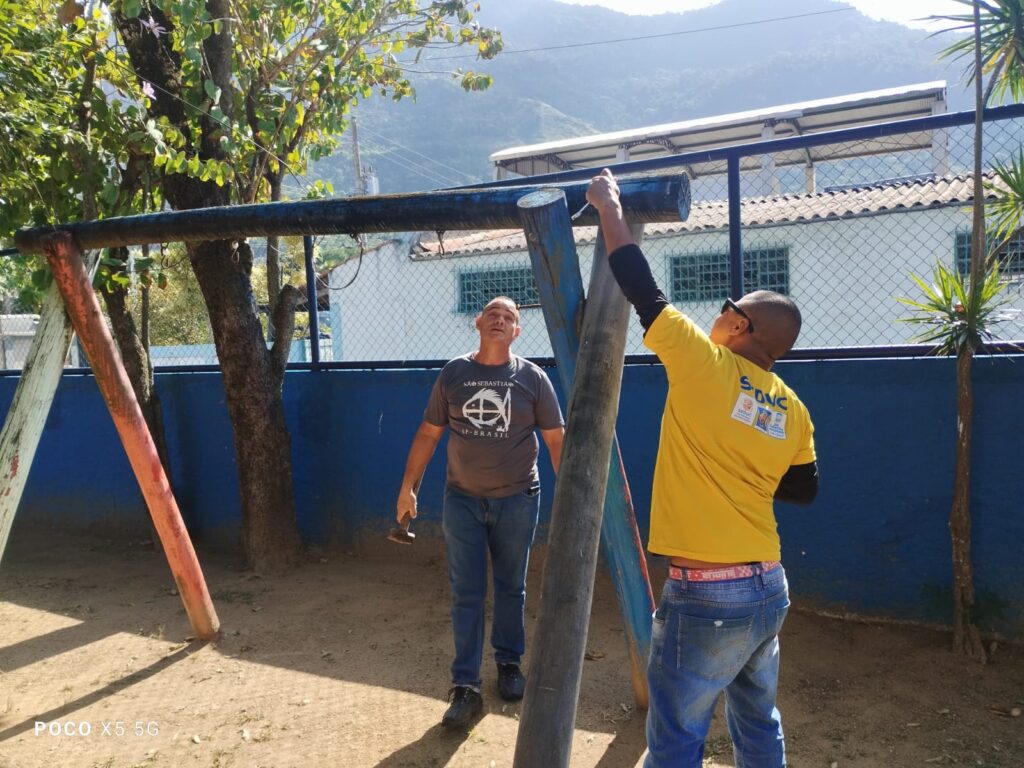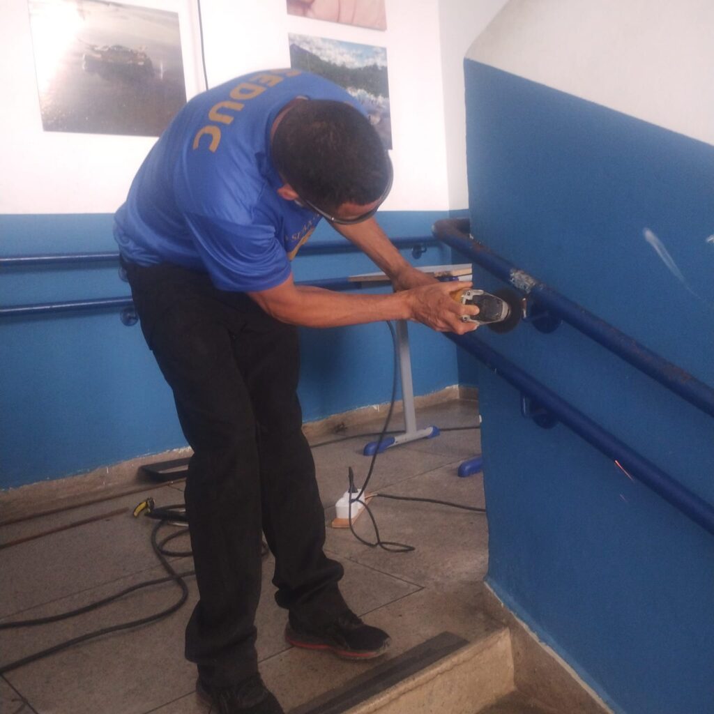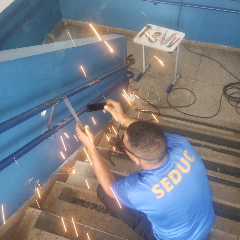 Conserto de corrimão na escola Cynthia Cliquet Luciano. Enseada