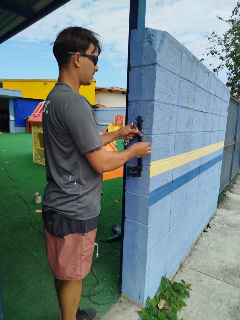 Conserto de trinco na escola Peteleco.