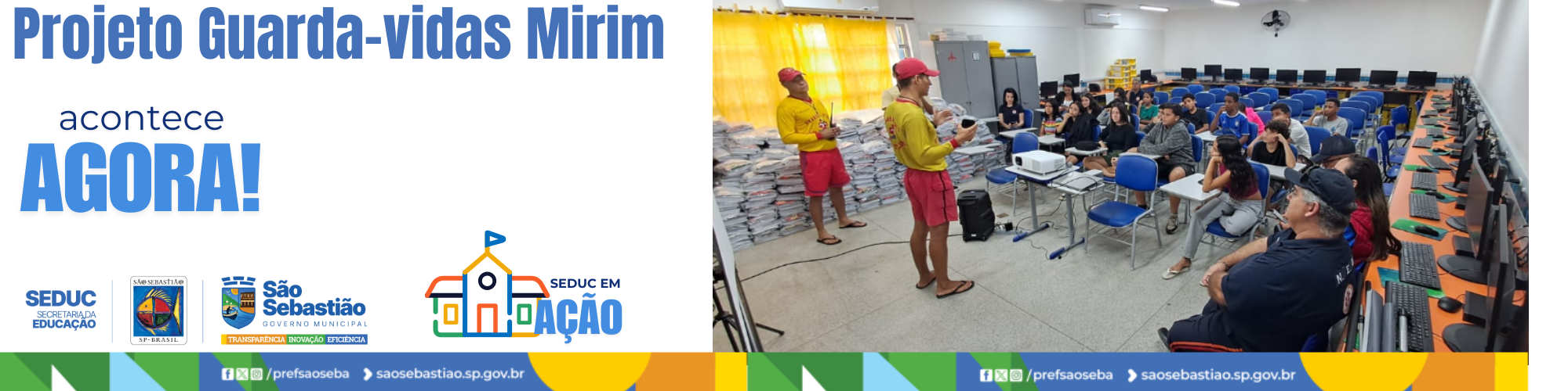 A Prefeitura Municipal de São Sebastião dá o início portanto, ao Projeto Guarda-vidas Mirim, que será realizado no contraturno escolar a partir do dia de hoje, sempre às quintas-feiras das 14h às 16h, na EM Edileusa Brasil que foi escolhida como escola piloto, pelos altos índices de afogamentos levantados pelo SAMU na praia de Maresias entre banhistas locais e turistas, pois esta iniciativa tem como finalidade capacitar os jovens a reconhecer e atuar em situações de emergência, tanto em contextos terrestres quanto aquáticos, além de instruí-los na identificação de riscos associados à praia, ao mar e em piscinas.