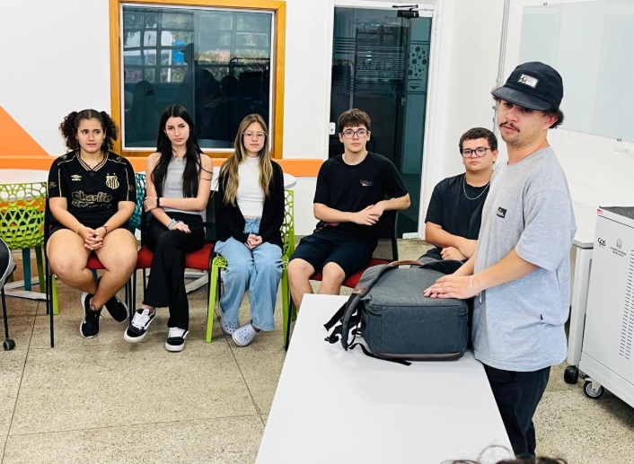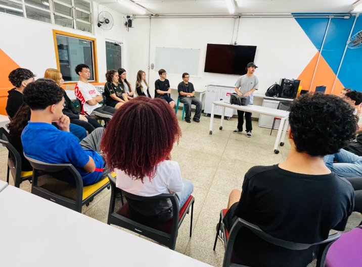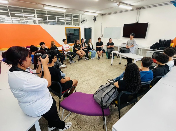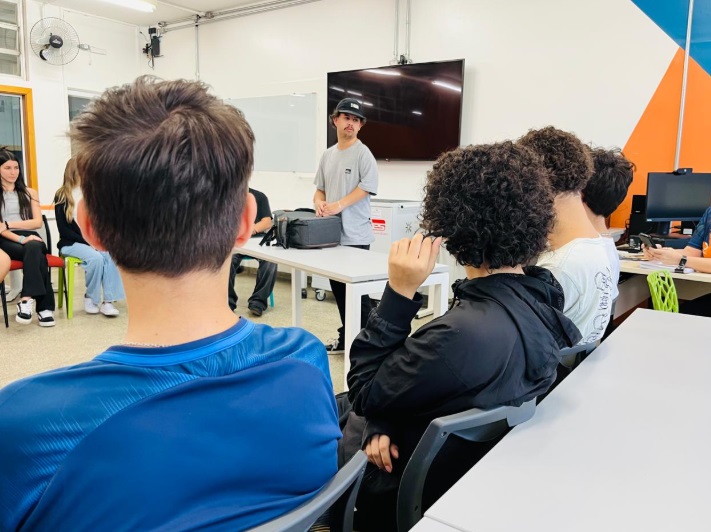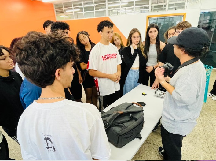 A atividade foi conduzida pelo Bruno Vicente e pela colaboradora Lohaine, que compartilharam experiências e dicas para inspirar os estudantes nesse universo da comunicação. 🙌