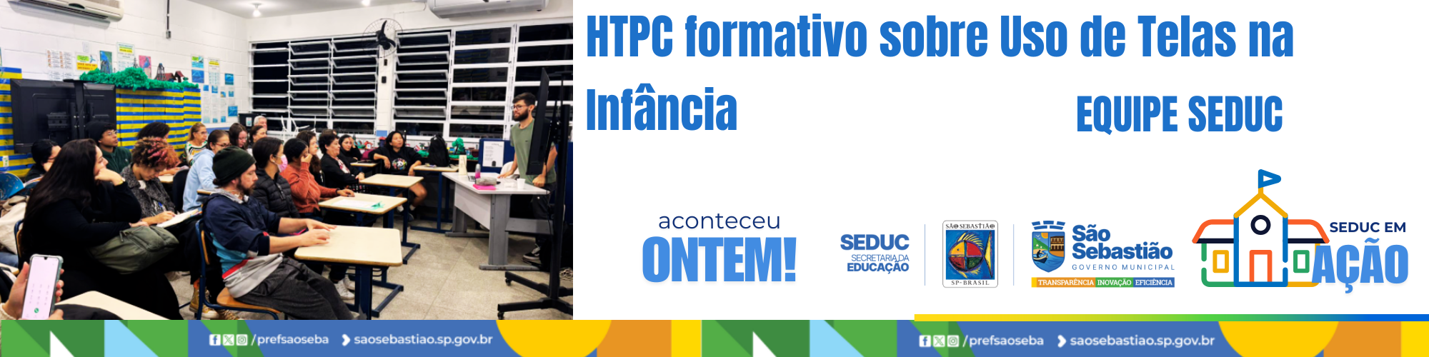 Na última terça-feira (05), os professores da EMEI Sonho de Criança e da Escola Municipal Henrique Tavares participaram de do HTPC formativo sobre o “Uso de Telas na Infância”. Vagner promoveu uma reflexão sobre os impactos do uso excessivo de telas e os desafios que educadores e famílias enfrentam diante dessa realidade.