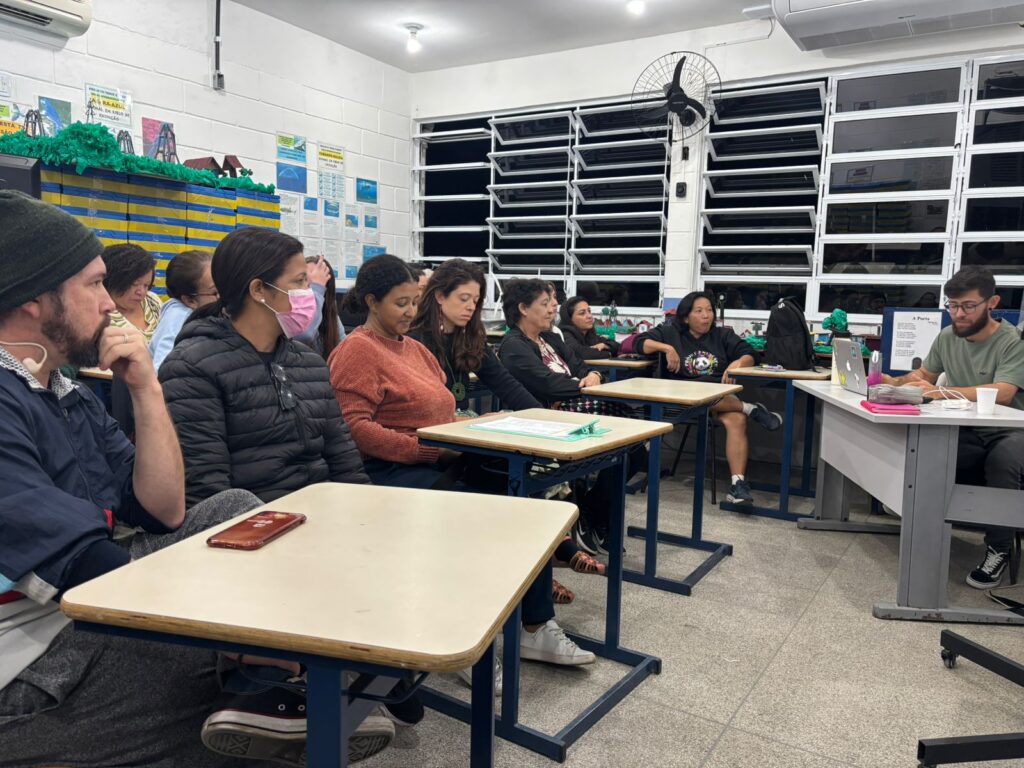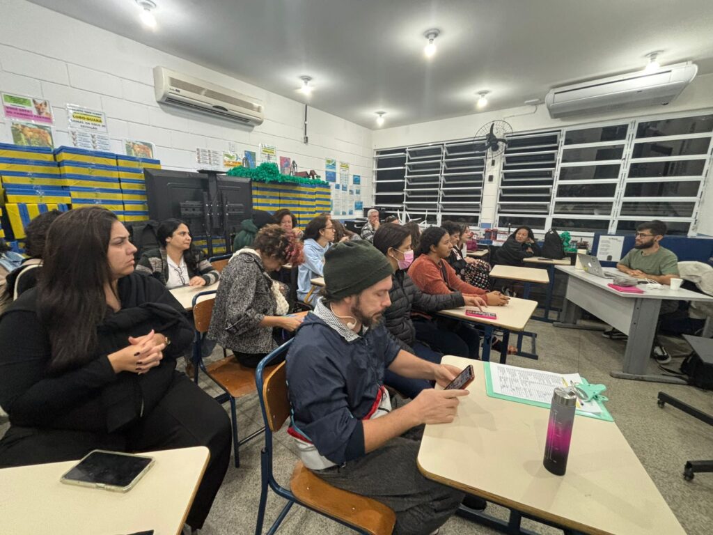 O encontro também foi um espaço de escuta e troca entre os professores, que expuseram suas angústias e preocupações com o comportamento das crianças, reconhecendo que a demanda extrapola o contexto escolar e atinge diferentes regiões, configurando-se como uma questão de saúde mental coletiva.