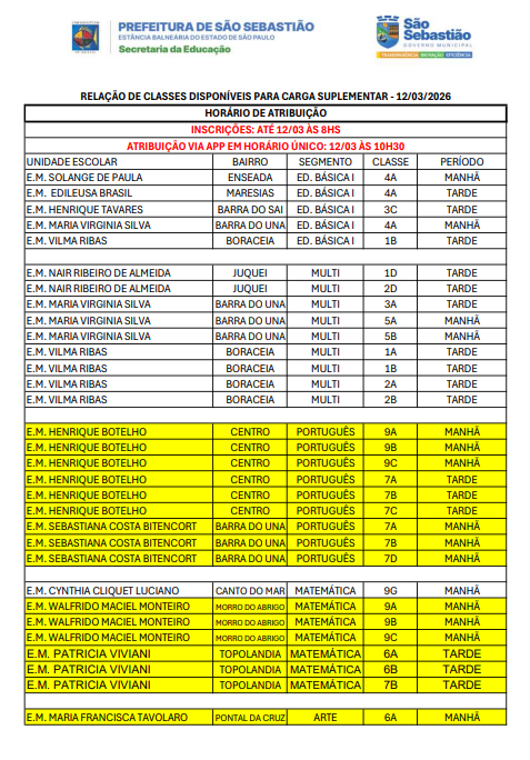 RELAÇÃO DE CLASSES DISPONÍVEIS PARA CARGA SUPLEMENTAR – 12/03/2026 Editais 11 de março de 202611 de março de 2026ludervanDeixe um comentário em RELAÇÃO DE CLASSES DISPONÍVEIS PARA CARGA SUPLEMENTAR – 12/03/2026