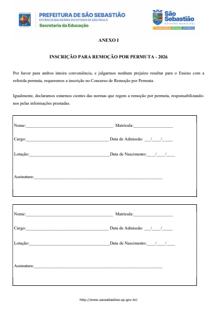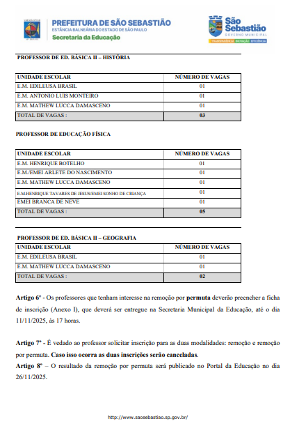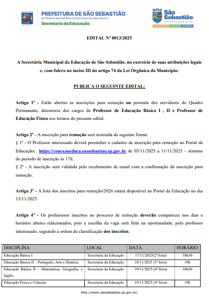 REMOÇÃO DO QUADRO PERMANENTE DOCENTE 2026