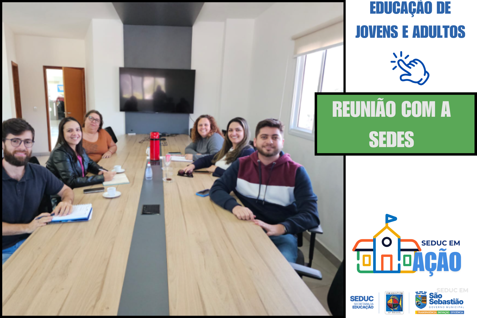 Em uma iniciativa voltada à promoção da inclusão e da acessibilidade, a Secretaria de Educação (Seduc), por meio das equipes da Educação de Jovens e Adultos (EJA) e da Educação Inclusiva, reuniu-se com profissionais da Secretaria de Desenvolvimento Social (Sedes) para alinhar estratégias de divulgação para ampliar o acesso às matrículas da EJA.