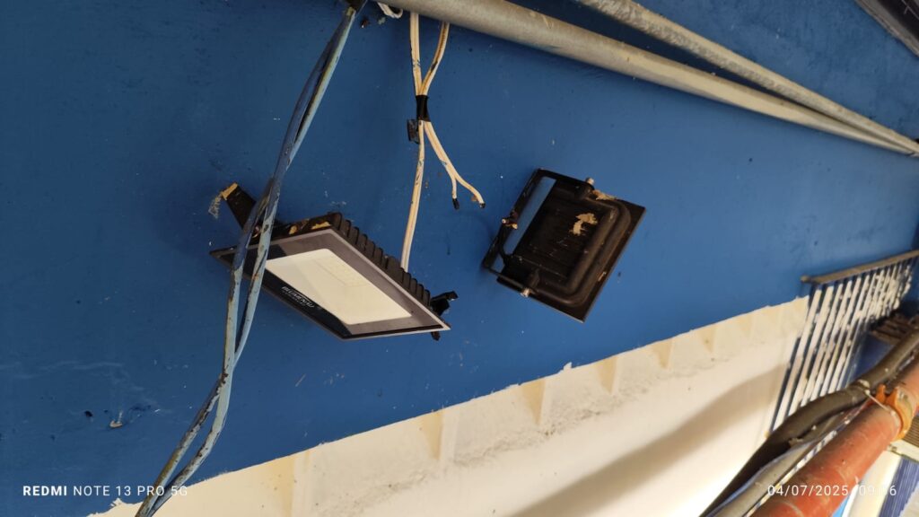 SECRETARIA DA EDUCAÇÃO VEM REALIZANDO AS TROCAS DE REFLETORES EXTERNOS DE QUADRAS E PÁTIOS DE VÁRIAS UNIDADES ESCOLARES. NESSE CASO ESPECÍFICO, AS TROCAS FORAM REALIZADAS NA UNIDADE MARIA FRANCISCA TAVOLARO.